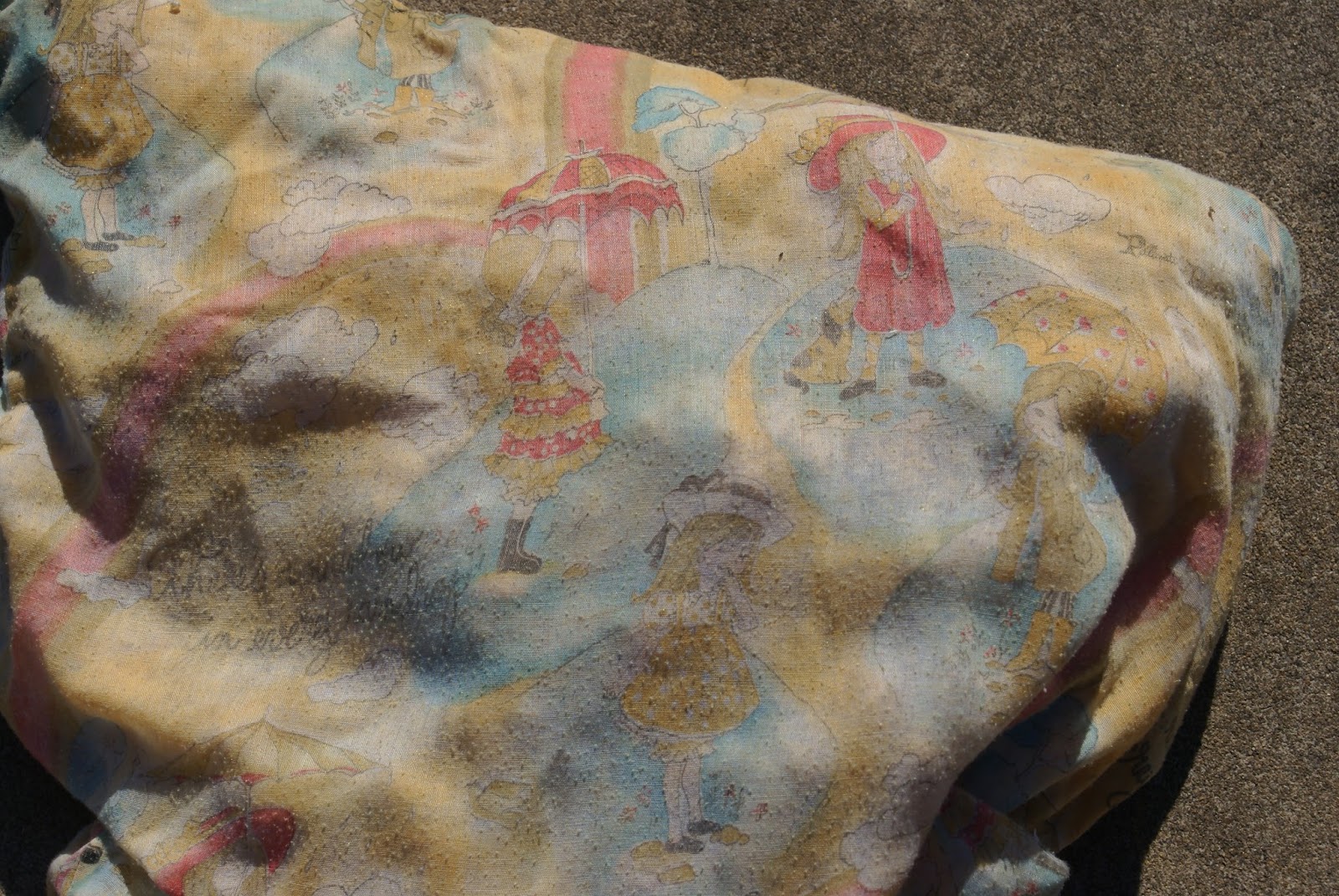 | Layer 4: Sesame Street pillowcase from my earliest childhood memories, completely faded and threadbare. |