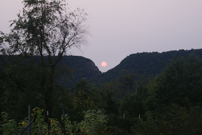 Tonight we saw a beautiful sunset. It is the time of year that the sun sets right in the cut in the mountain. The picture doesn't do the colors justice, but I'll post it anyway.